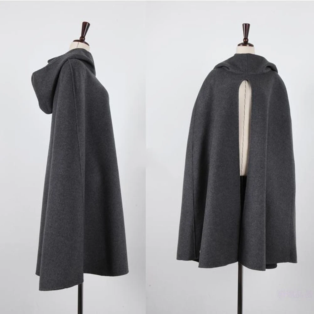 Product Name: Capa con capucha de lana abrigo de viento de mujer capa larga moda Outwear abrigo Suelto