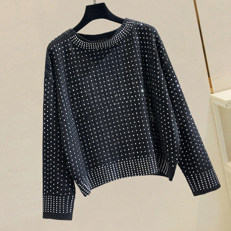 Product Name: Suéter de diamante para mujer nueva manga de murciélago suelta de planchar camisa de punto básica tendencia superior otoño 2019 chica dama ocio suéter abrigo