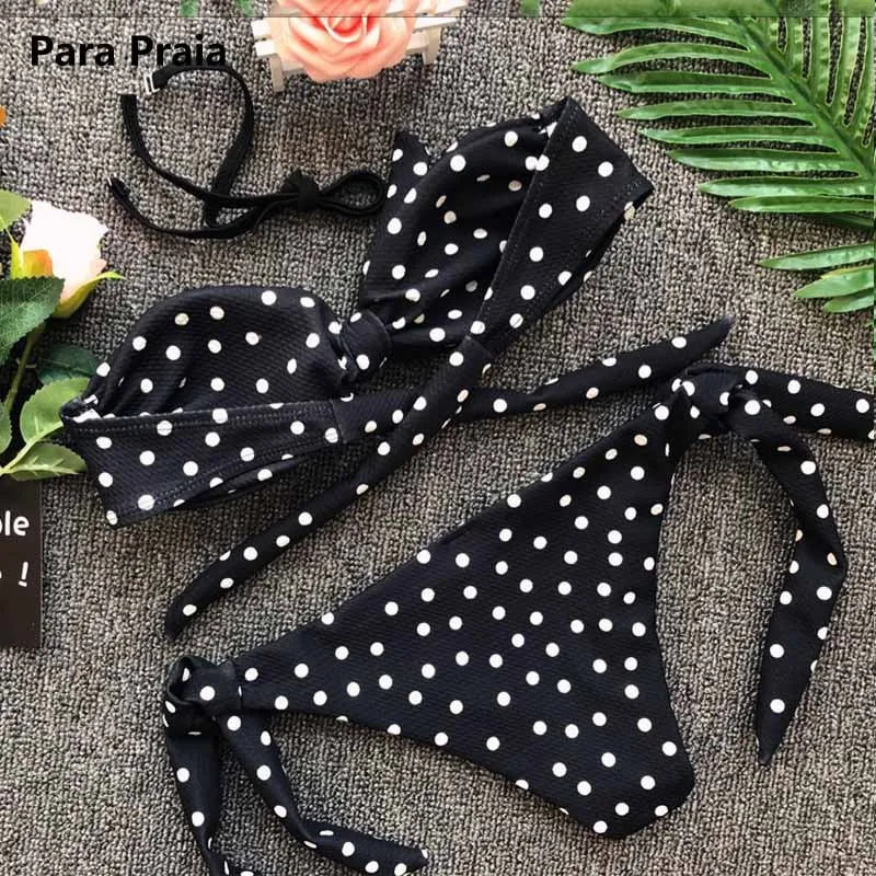 Product Name: Lindo Bikini de lunares Tanga Sexy Bandeau Bikini brasileño conjunto 2019 bañador con lazo Halter Push Up traje de baño playa traje de baño puede
