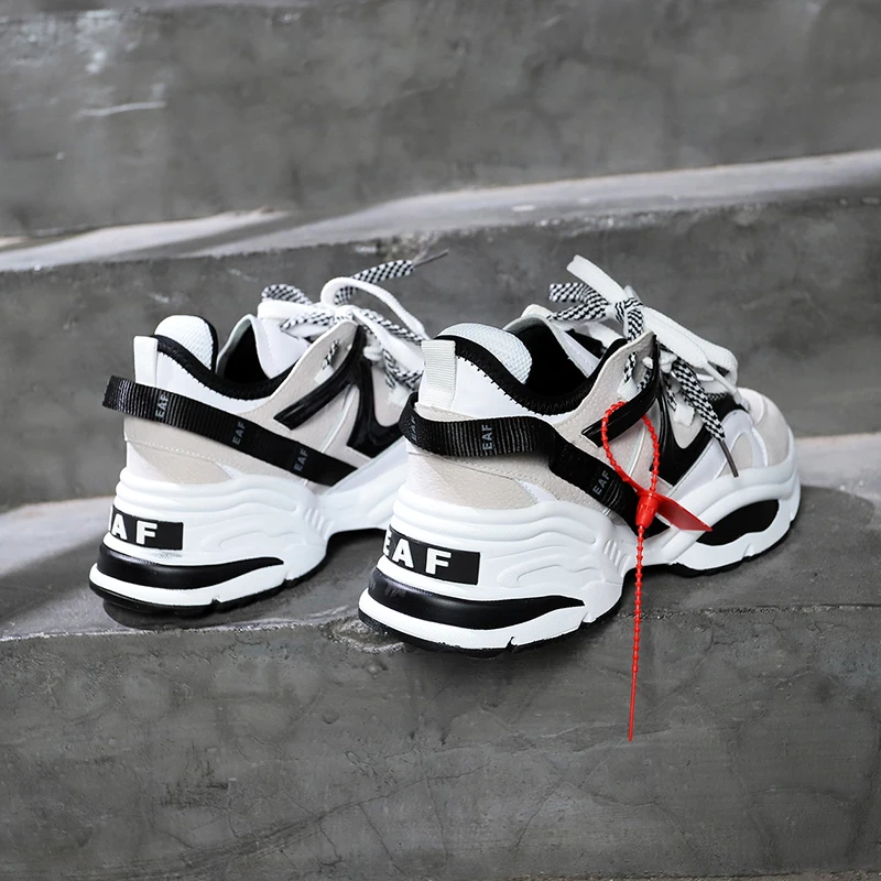 Product Name: Moda 2019 Harajuku zapatos casuales de mujer con cordones de cuero papá zapatillas gruesas planas gruesas suela Tenis cuña blanca cesta para caminar
