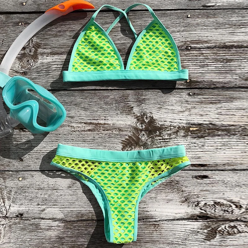 Product Name: In X Sexy bikini fluorescente 2019 traje de baño de malla transparente para mujer conjunto de bikini Push up traje de baño verde para mujer ropa de playa nuevo