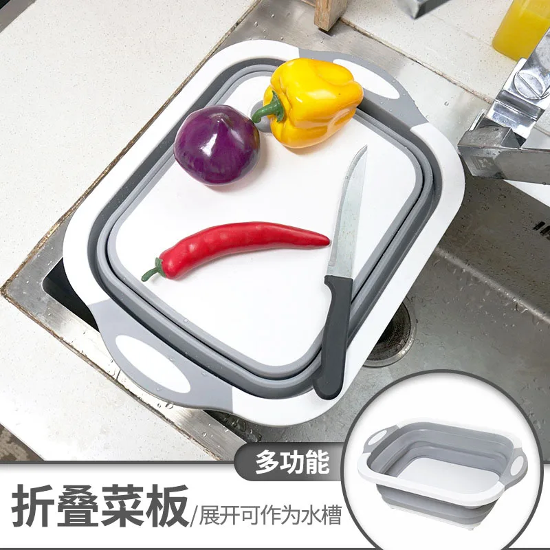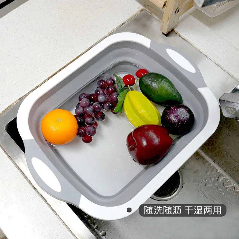 Product Name: Tabla de cortar plegable con cesta plato bañera multifunción plegable para cortar cestas cesta de frutas y verduras lavabo