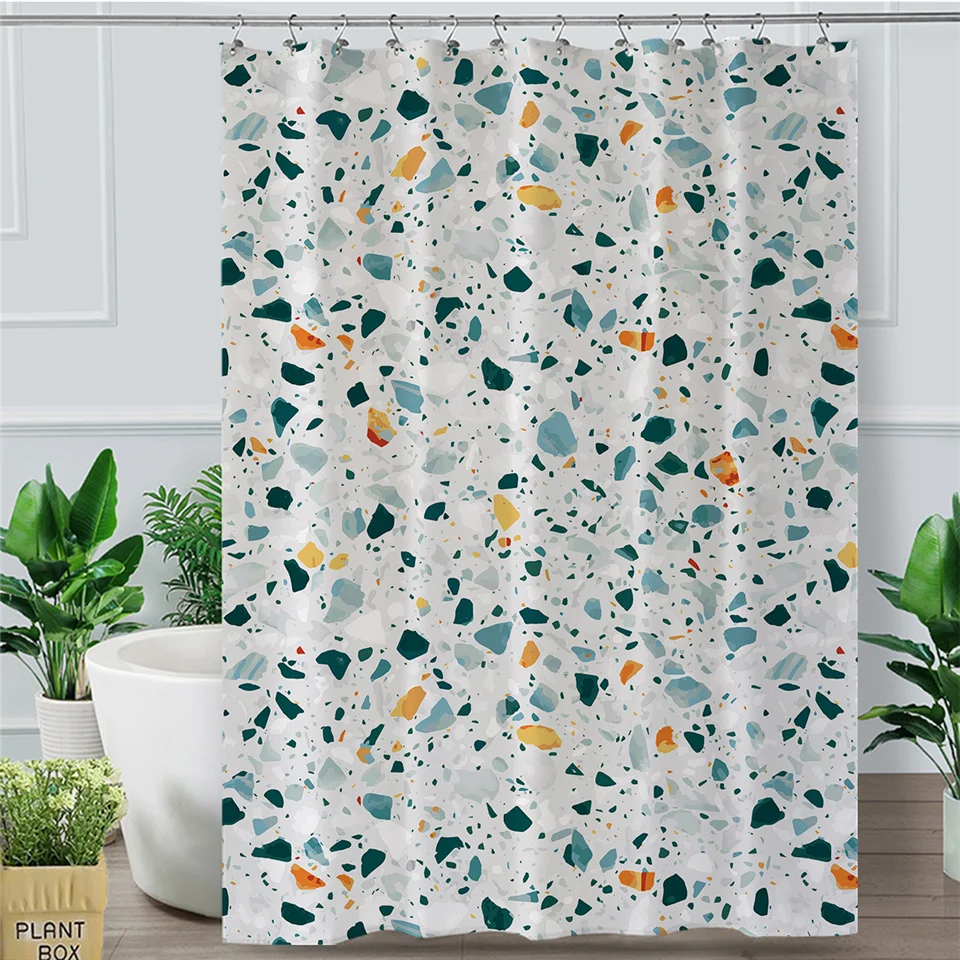 Product Name: Cortina de ducha de baño de cuarzo blesliving piedras coloridas cortina de baño Roca Terrazzo cortina de mármol impermeable blanco con ganchos
