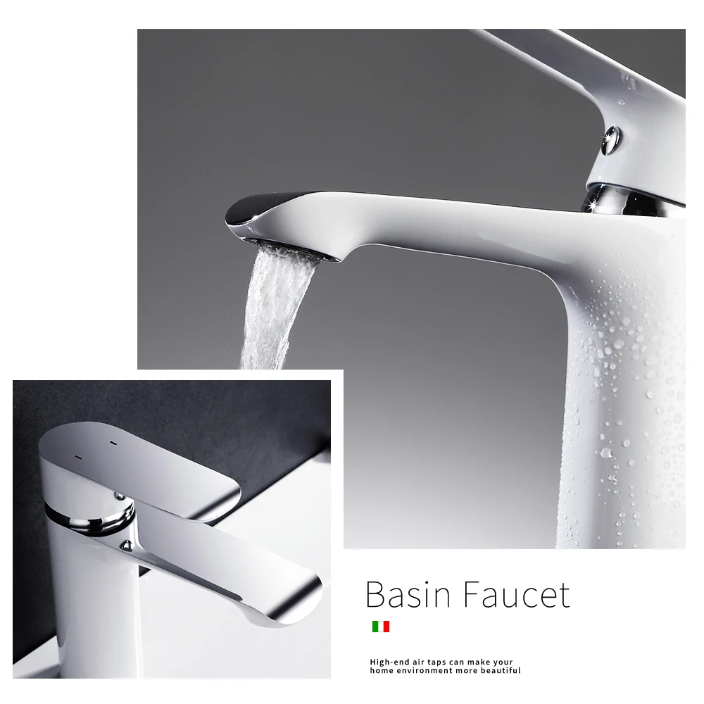 Product Name: Grifo de baño montado en la cubierta grifo mezclador de lavabo cromado grifo de lavabo tocador agua fría grifo llave de pintura blanca