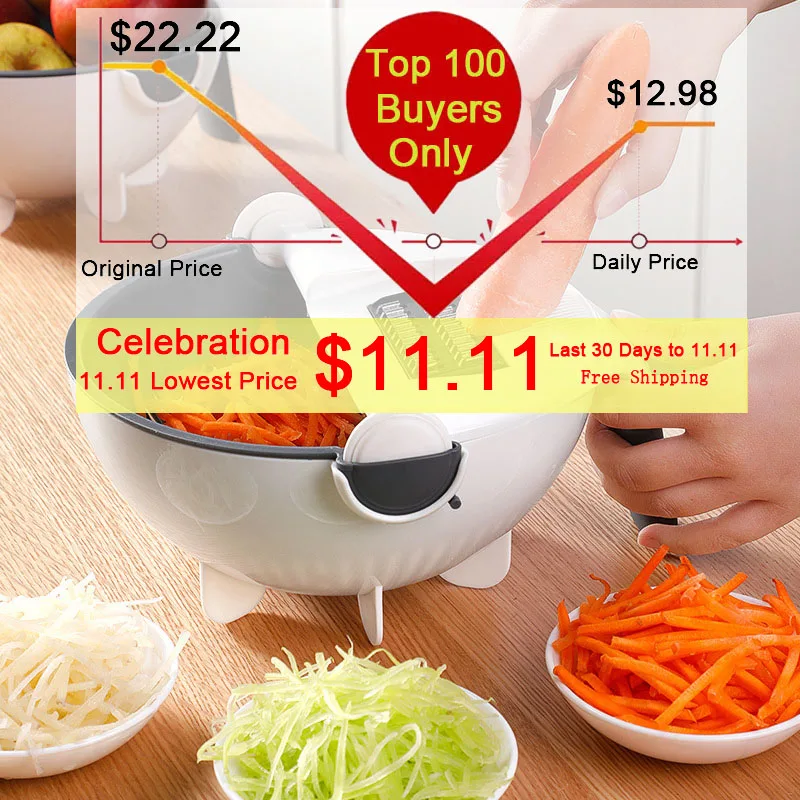 Special Offer Rebanador vegetal multifuncional cortadora, trituradora Manual de mandolina Chopper rallador de patata zanahoria queso 2 en 1 cesta de drenaje Discount 50% Today!