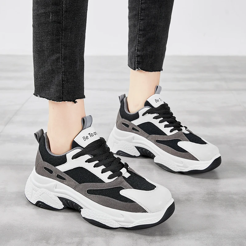 Product Name: Zapatillas gruesas para mujer 2019 moda baloncesto zapatos de plataforma para mujer zapatillas negras para mujer 6CM de tacón alto zapatos casuales para papá