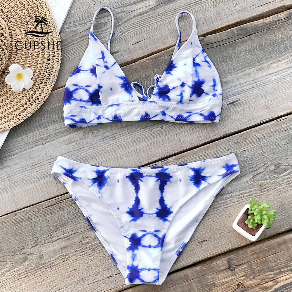 Special Offer Conjunto de Bikini de dos piezas CUPSHE azul Tie dye para mujer con encaje Sexy Tanga trajes de baño de dos piezas 2020 para chica bonitos trajes de baño de playa Discount 50% Today!