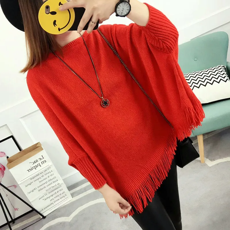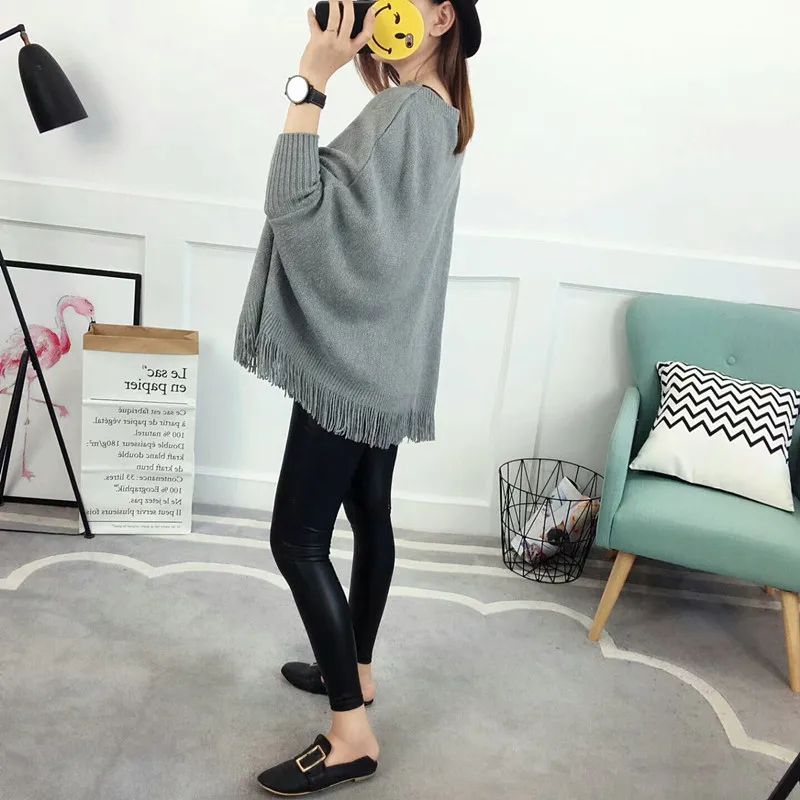 Product Name: Nuevo otoño jerseys grises y suéteres suelta borla suave chal Poncho mujeres Slash cuello murciélago manga larga suéter chal