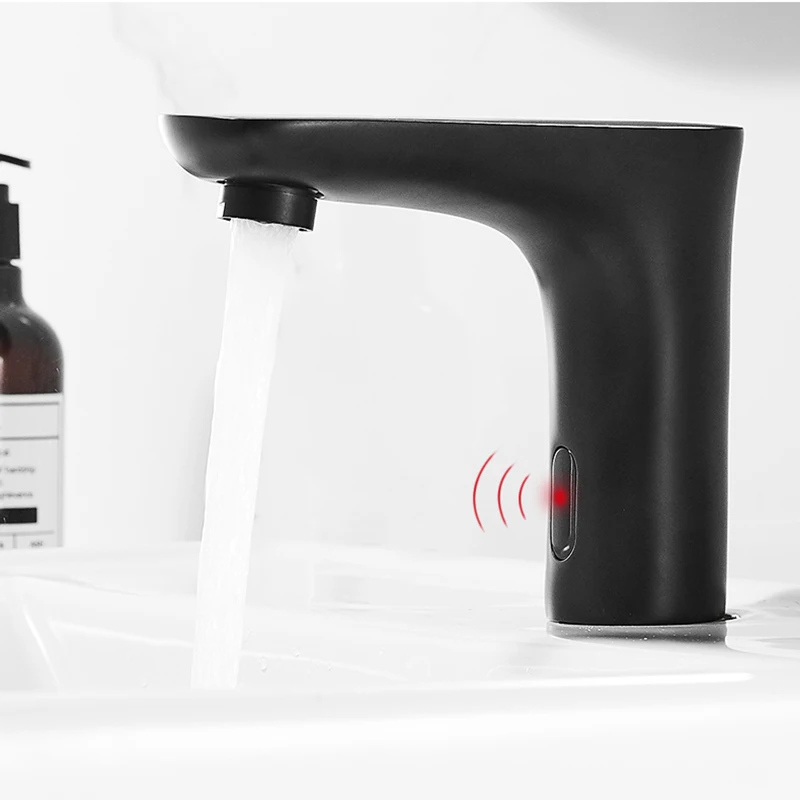 Product Name: Grifo de Sensor automático negro montado en la cubierta lavabo de baño grifo infrarrojo sin contacto grifos Sensor frío y caliente
