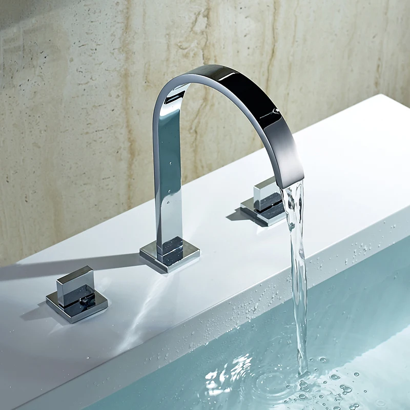 Product Name: Grifos de lavabo de latón pulido cromado montado en la cubierta de baño cuadrado grifos de fregadero 3 agujeros de doble manija de agua fría y caliente grifo LT 109