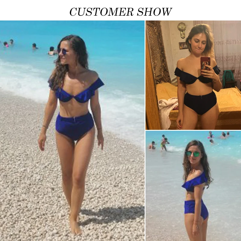 Product Name: Traje de baño rojo con volantes Sexy para mujer traje de baño con escote en v profundo para mujer Bañadores de cintura alta bikini Push up off shoulder swimwear 2018 biquini