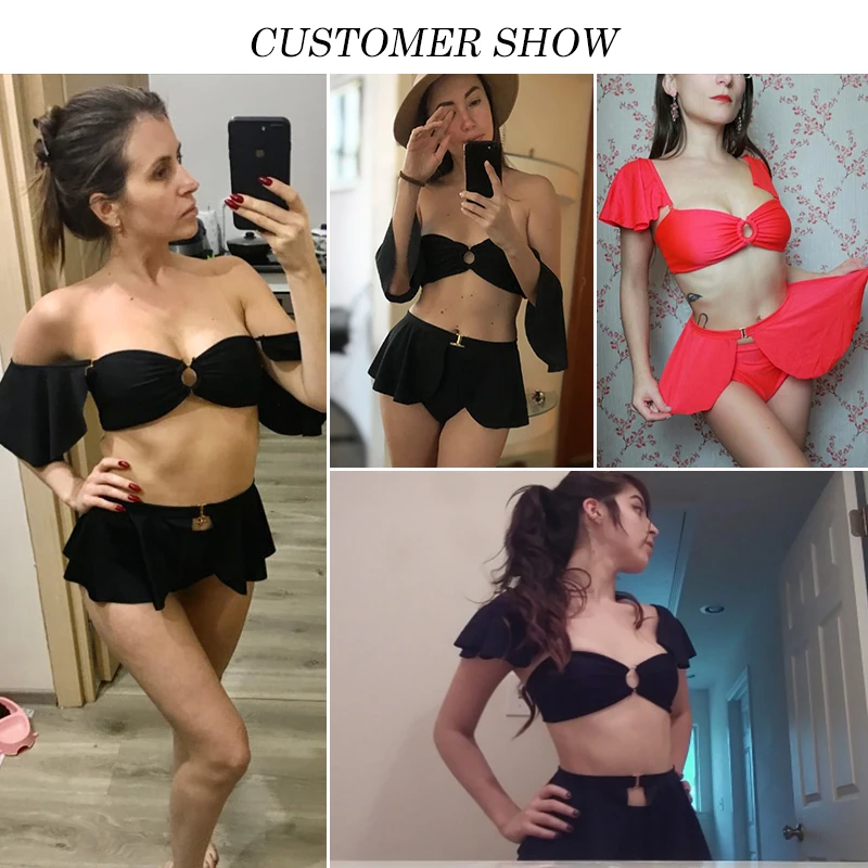 Special Offer In X traje de baño negro con falda Sexy bikini de cintura alta 2020 traje de baño con volantes Mujer traje de baño retro sin hombro Discount 40% Today!