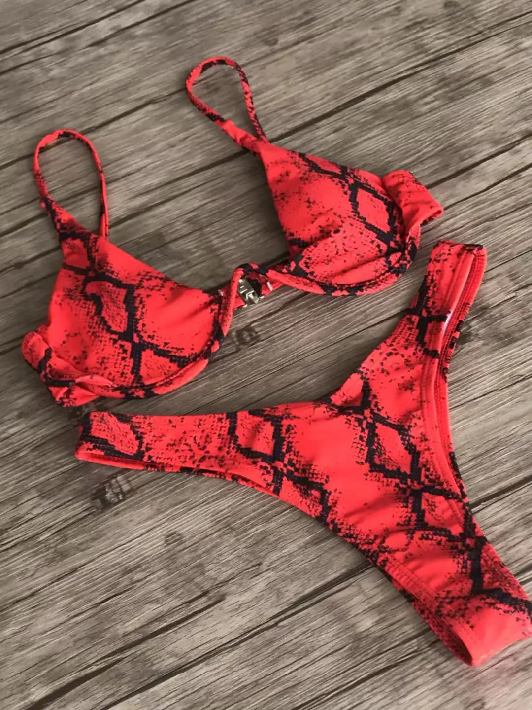 Product Name: Traje de baño para mujer traje de baño dividido Sexy Bikini estampado de piel de serpiente Bikini placa de acero Junta Bikinii traje de baño de dos piezas