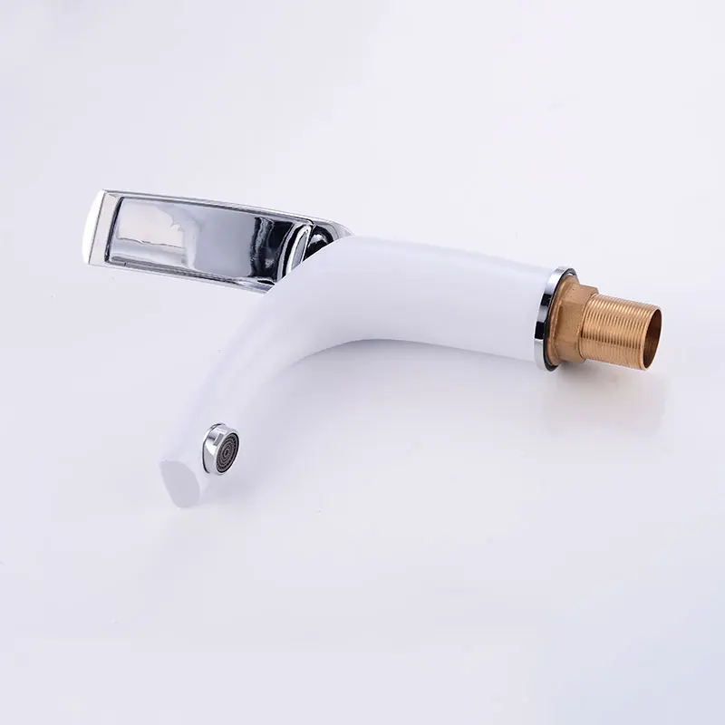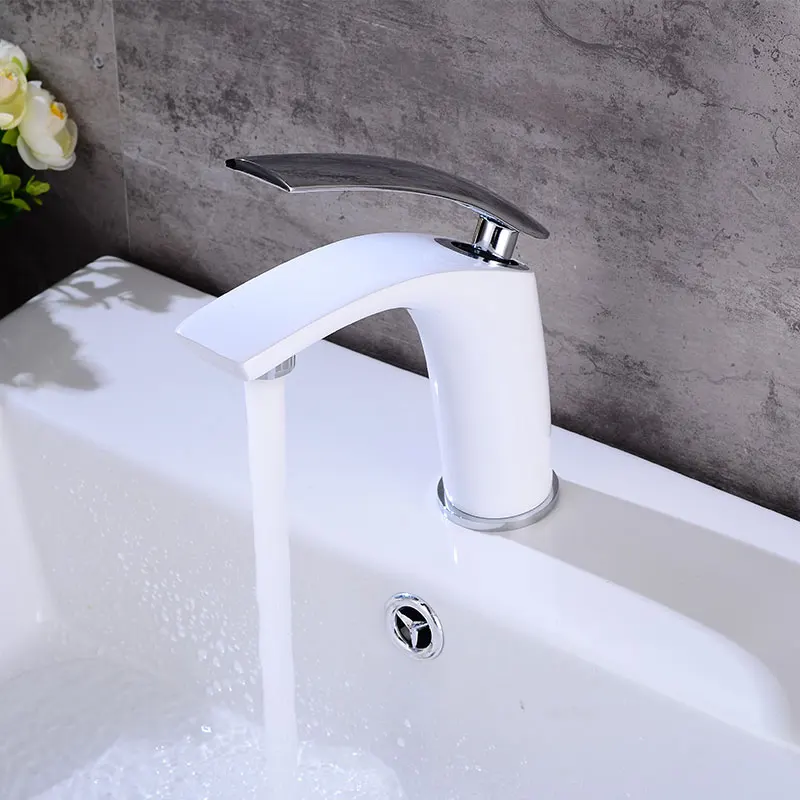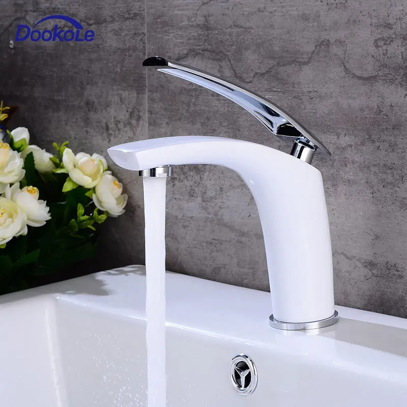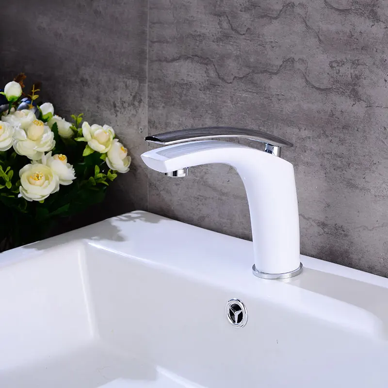 Special Offer Grifo de lavabo vanity de cuarto de baño manija única cubierta de un solo agujero montada, grifos mezcladores de lavabo de latón blanco acabado Discount 30% Today!