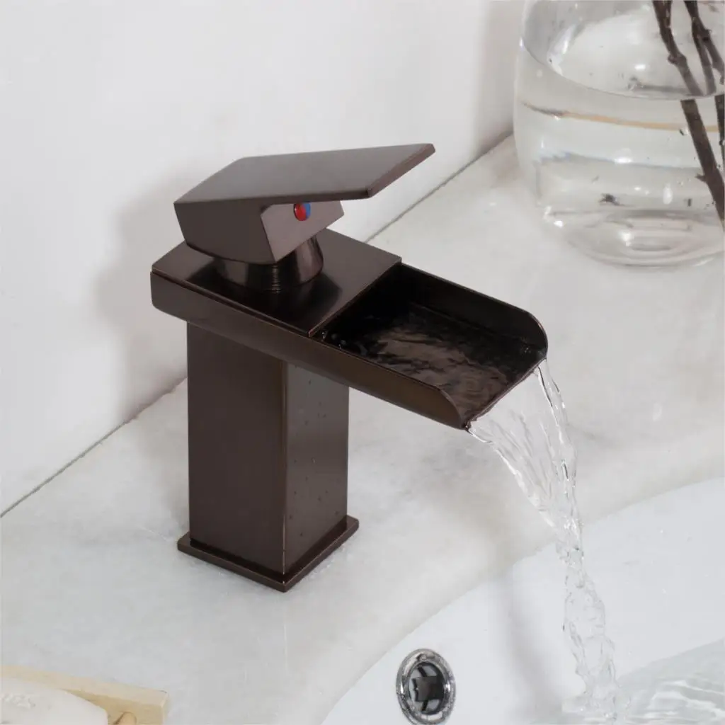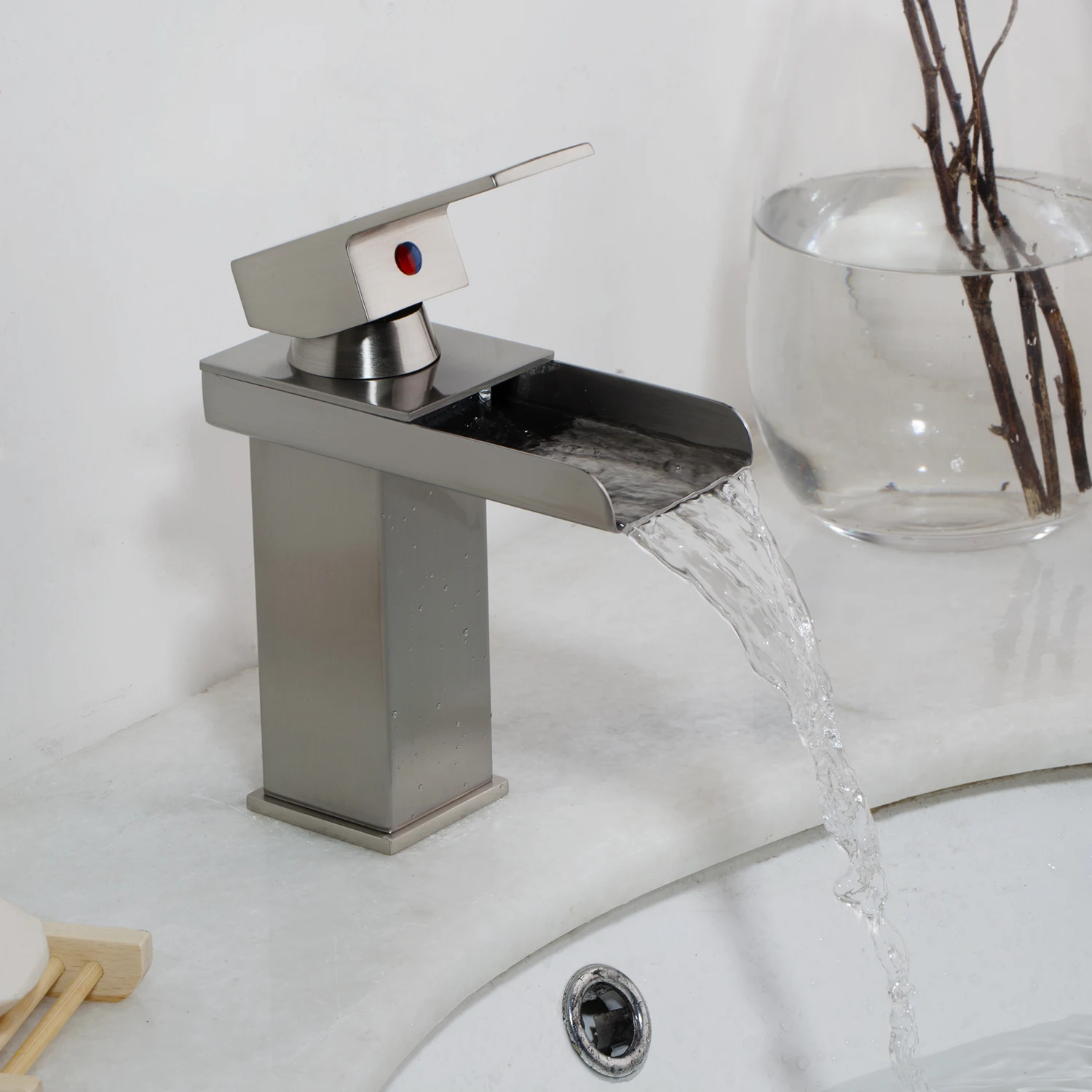 Special Offer KEMAIDI RU lavabo grifo mezclador cascada negra cromado latón agua lavabo grifo mezclador níquel cepillado Discount 35% Today!
