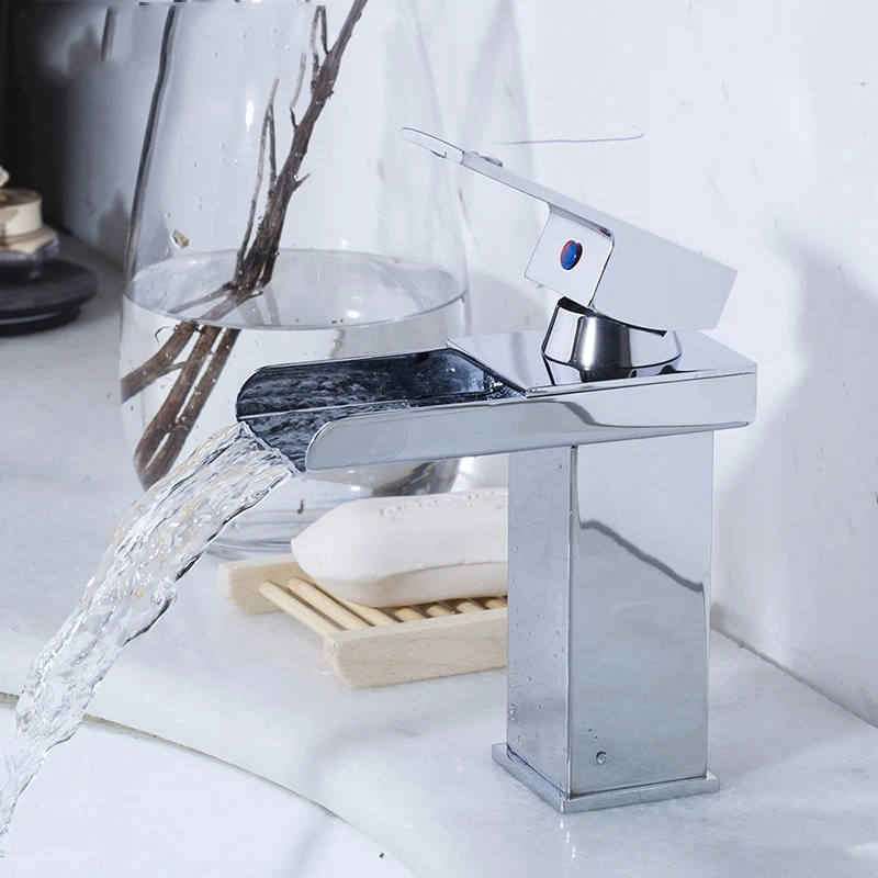 Product Name: KEMAIDI RU lavabo grifo mezclador cascada negra cromado latón agua lavabo grifo mezclador níquel cepillado