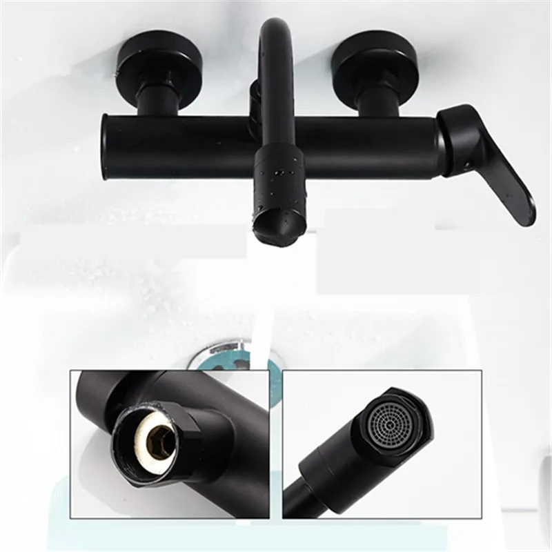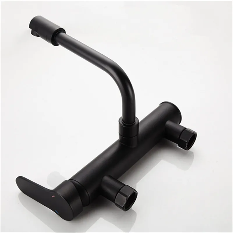 Product Name: Grifos de cocina LIUYUE de latón negro montado en la pared de doble agujero de 360 grados giran el grifo del lavabo del baño grifos mezcladores de agua caliente fría