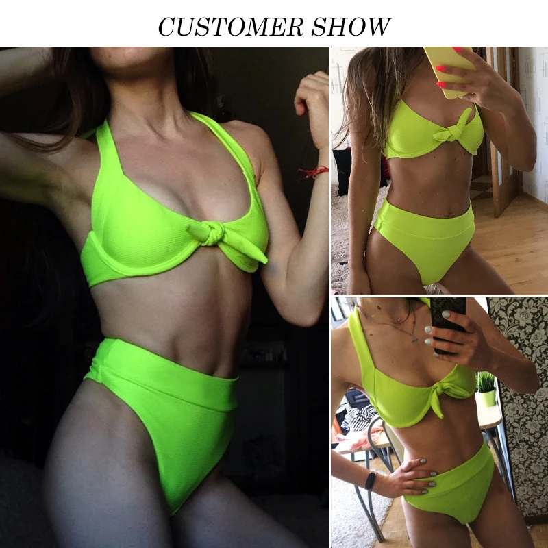 Product Name: Sexy neón verde brasileño bikini Tanga traje de baño Push up traje de baño mujeres 2019 nuevo traje de baño de cintura alta de corte alto bañadores femeninos