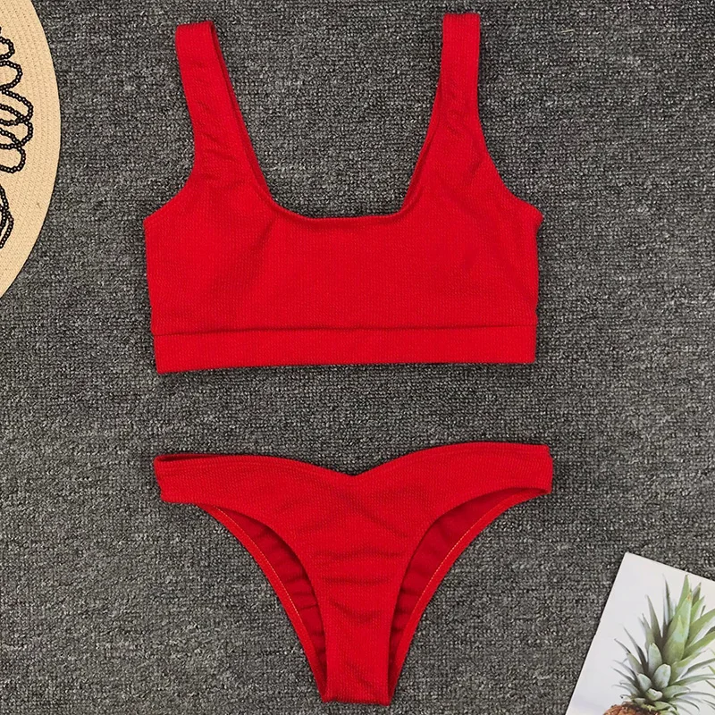 Product Name: Bikini deportivo acanalado 2019 traje de baño Sexy para mujer traje de baño de dos piezas conjunto brasileño de Bikini Push up traje de baño