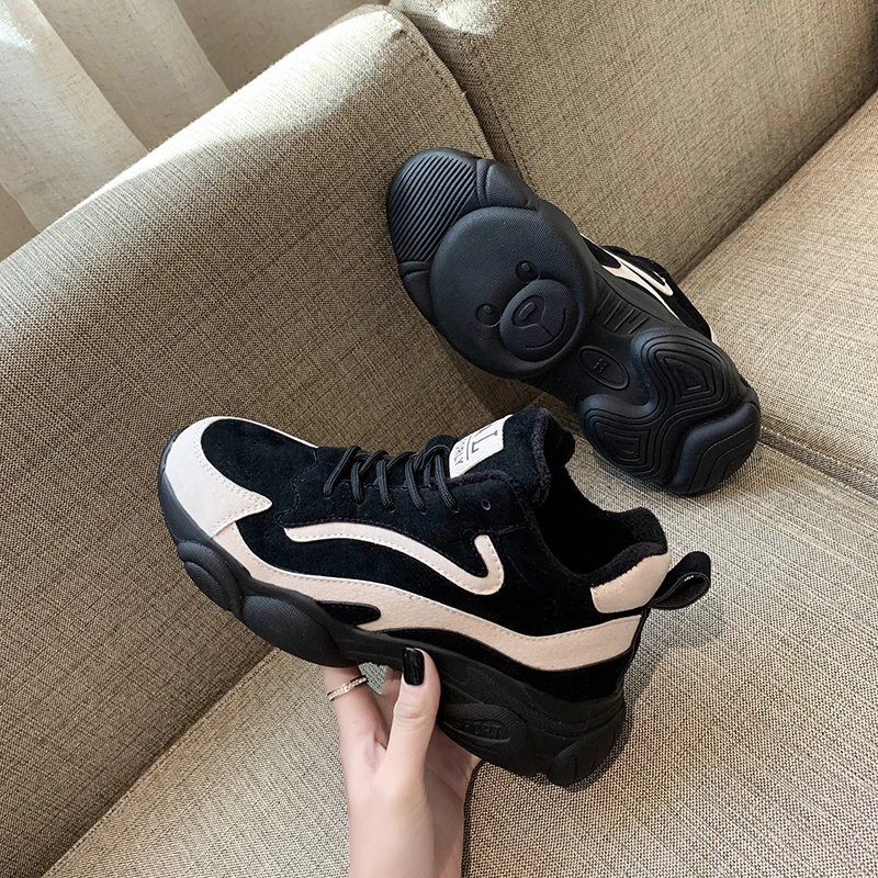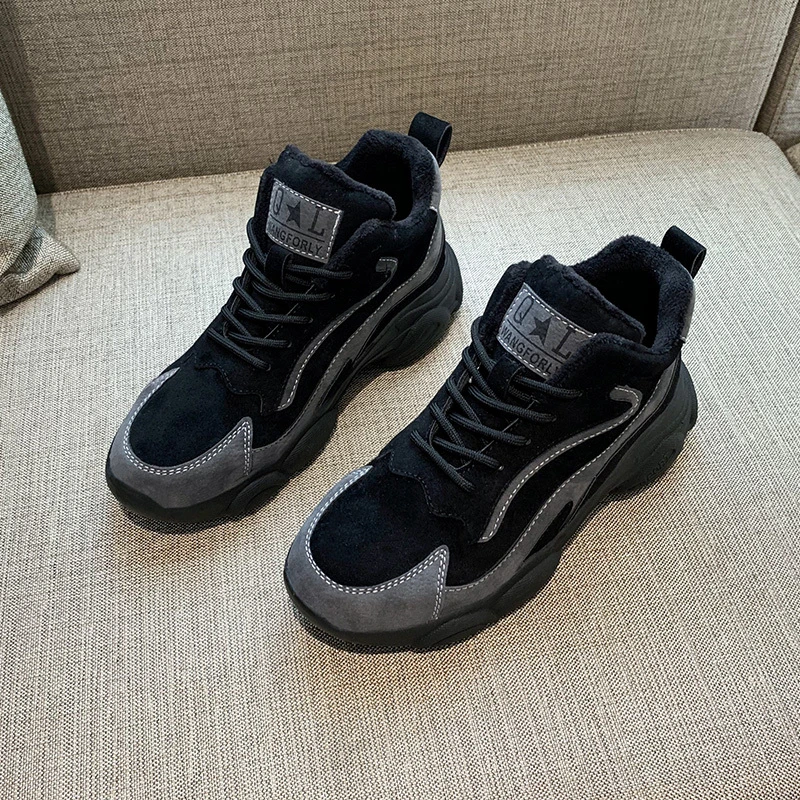 Product Name: Zapatos altos para mujer 2019 invierno moda femenina canastilla negra mantener caliente marca Casual zapatos mujer plataforma zapatillas gruesas