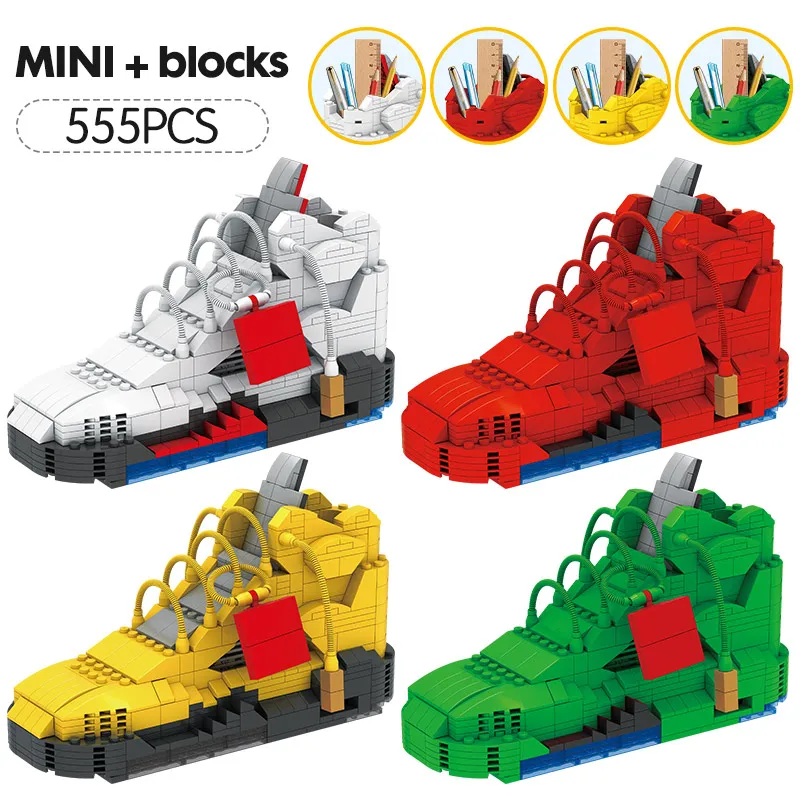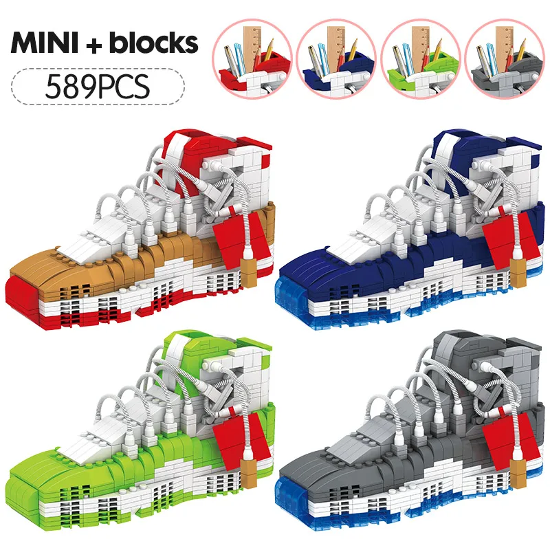 Special Offer LOZ Mini Cute Sport baloncesto zapatos bloques de construcción zapatillas modelo bolígrafo contenedor ladrillos caja de lápices juguetes para niños papelería Discount 40% Today!