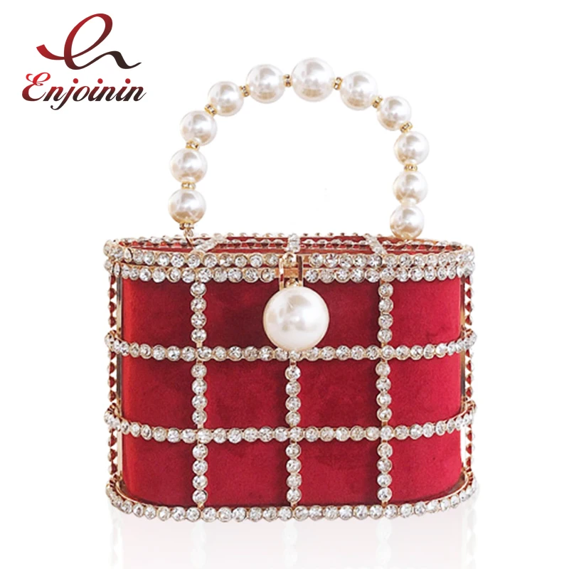 Special Offer Popular cesta calada de alta calidad con diseño de diamantes perlas bolsos de fiesta de lujo para mujer bolso de noche moda Totes bolsa Bosla Discount 21% Today!