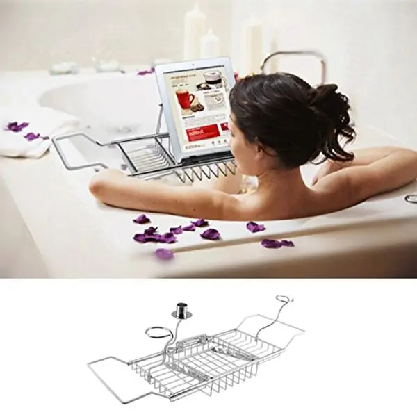 Special Offer Sobre bastidores de bañera organizador de ducha bandeja de carrito de bañera con lados extensibles Discount 3% Today!