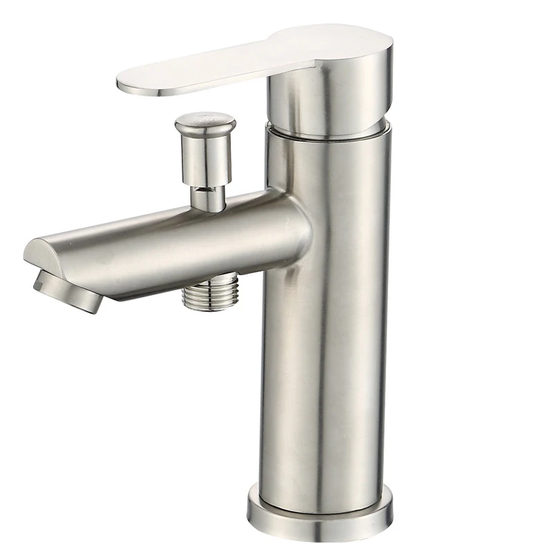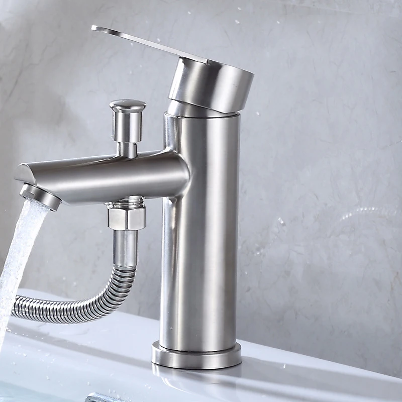 Special Offer Grifo de acero inoxidable montado en la cubierta del grifo del lavabo grifo mezclador con la cabeza de la ducha baño ducha agua caliente y fría boquilla de la válvula mezcladora Discount 30% Today!