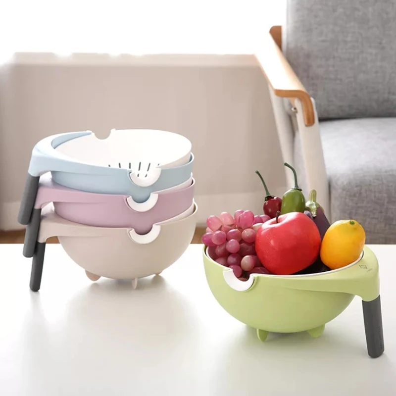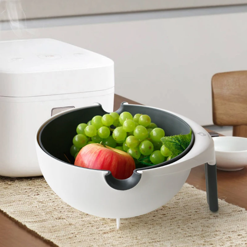 Product Name: Cesta de drenaje giratoria de doble lavabo de cocina casera cesta de plástico de lavado sala de estar mesa de café plato de almacenamiento de frutas
