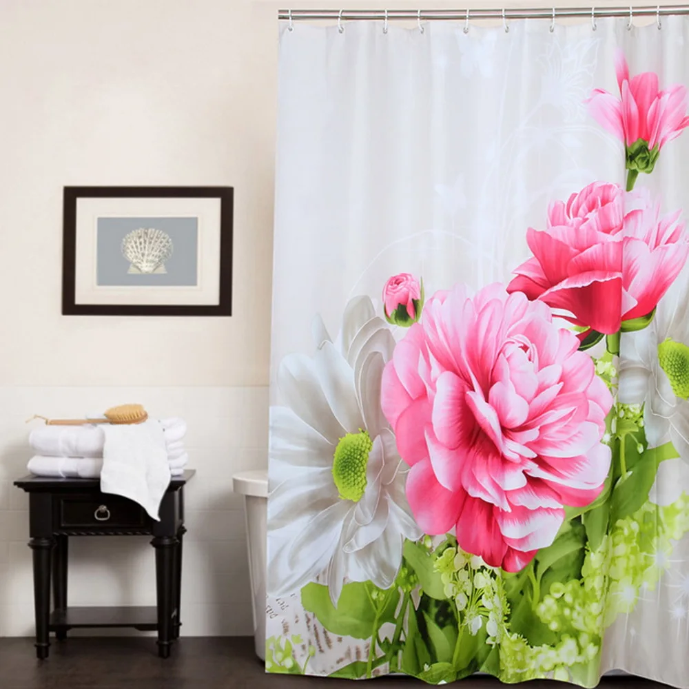 Special Offer Árbol feliz poliéster rojo peonía Cortina de ducha espesar tela cortina de baño flor impermeable cortina de baño cuatro tamaños Discount 45% Today!