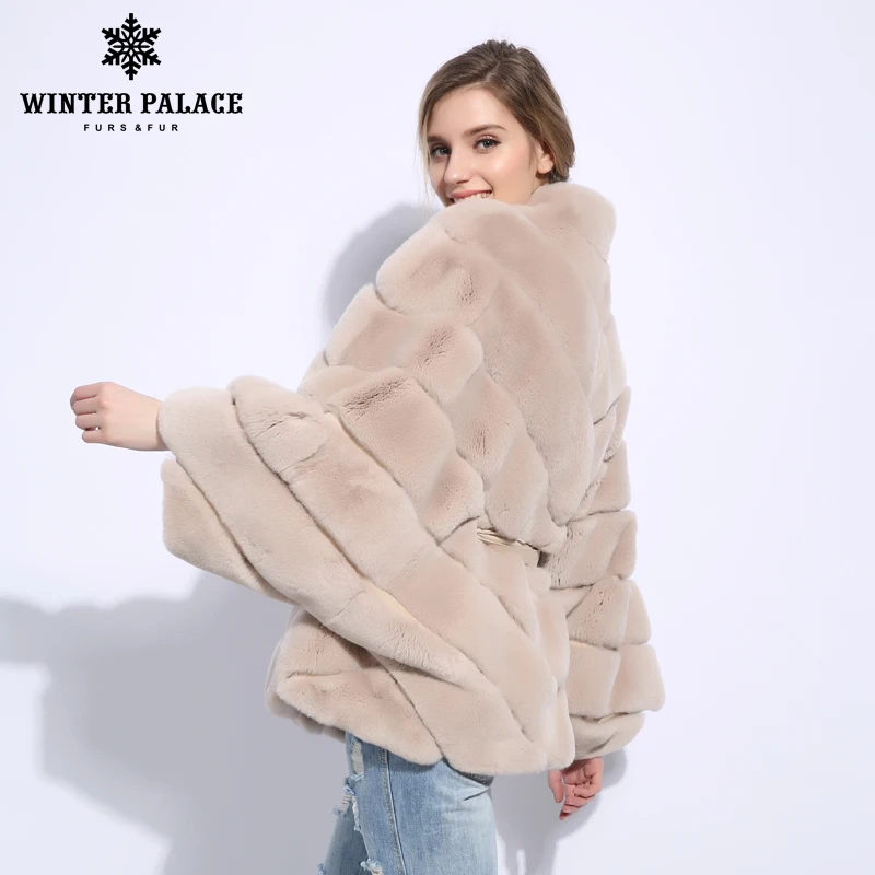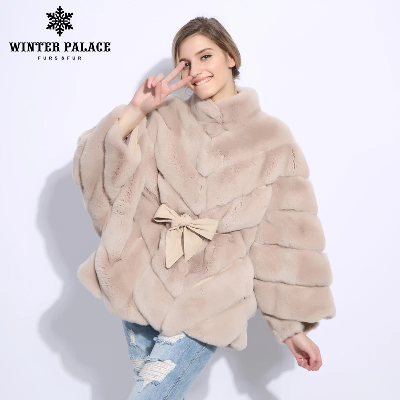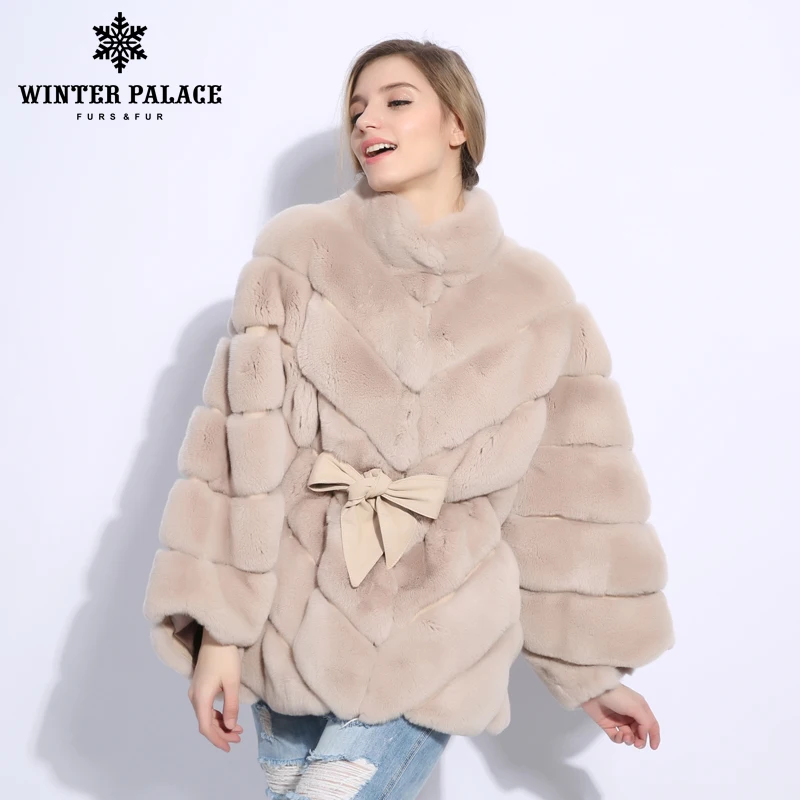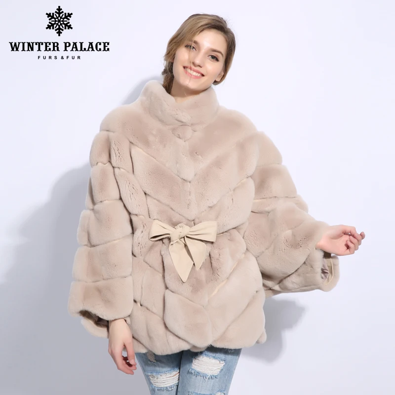 Special Offer 2018 abrigo de piel de invierno capa de moda nuevo abrigo de piel de conejo Casual rex rabblt abrigo de piel sólido real rex rabblt abrigo de piel cuello redondo Discount 50% Today!