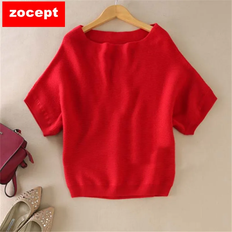 Special Offer Zocept 2019 jersey de Cachemira de alta calidad mujer suelta Casual Camisa de murciélago grande de manga corta de punto suave y cómodo suéteres Discount 55% Today!
