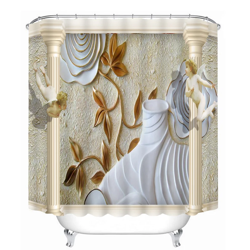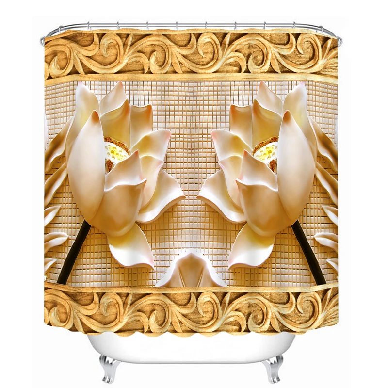 Product Name: Cortinas de ducha clásicas de lujo talladas patrón 3D cortinas de baño gruesas impermeables para baño personalizables