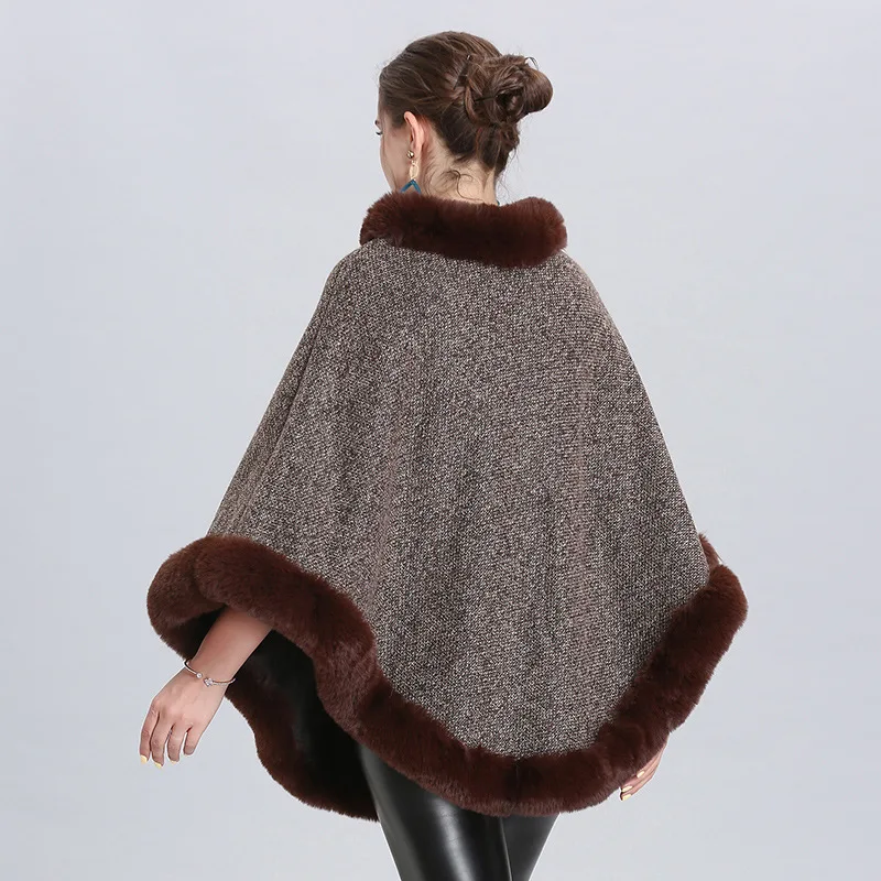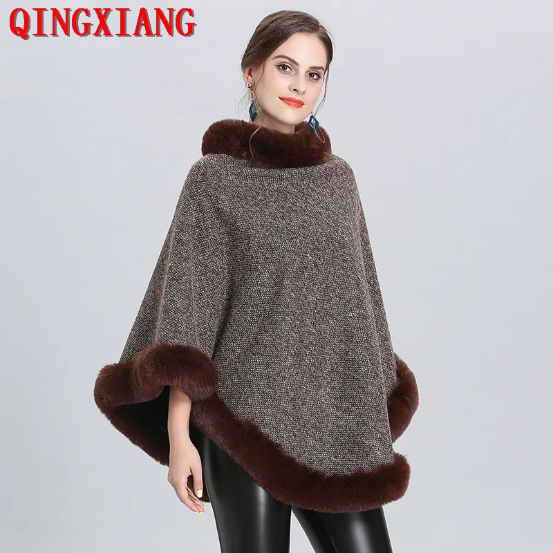 Product Name: 5 colores 2019 invierno Faux Fox Fur Out Street Wear mujeres capas Poncho sólido tejido O Cuello de piel suéter más terciopelo cálido suéter