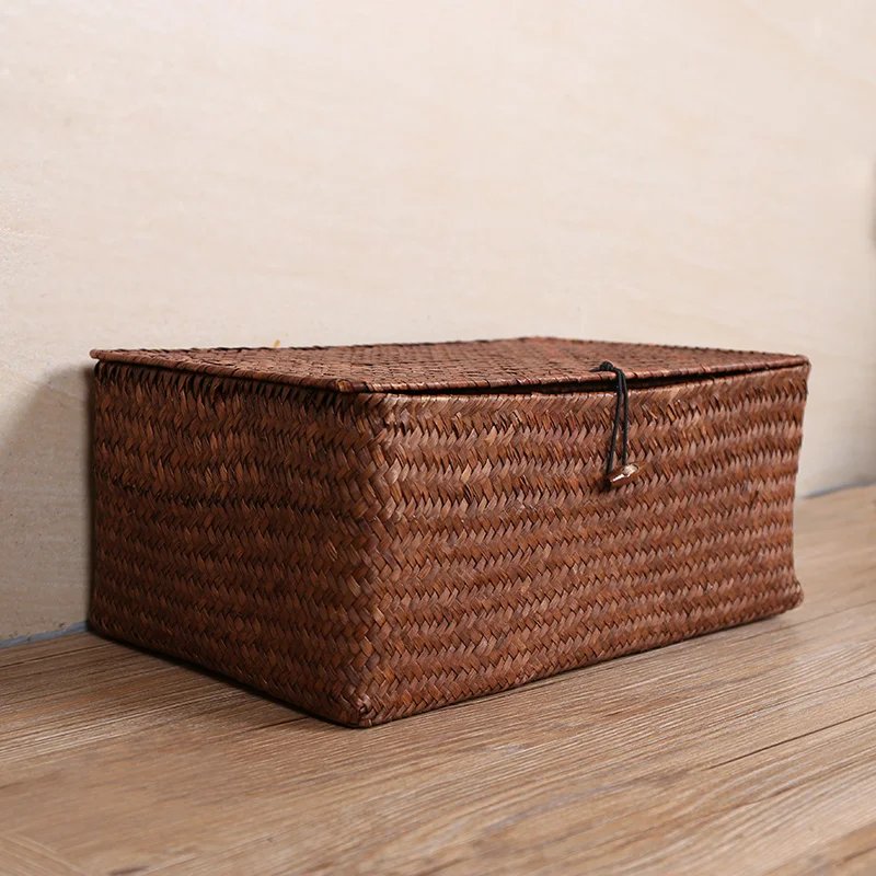 Special Offer Cesta de almacenamiento Manual de tejido tapa de los residuos de almacenamiento cesta caja Almacenamiento de clasificación caja de joyería H Discount 30% Today!