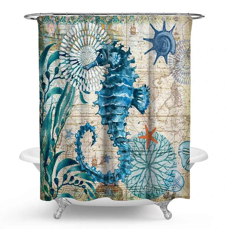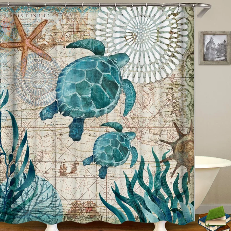 Product Name: Cortina de ducha de poliéster con estampado de tortuga marina, cortinas de baño para el hogar con 12 ganchos, cortinas de baño para el hogar, suministros nuevos 1 pc