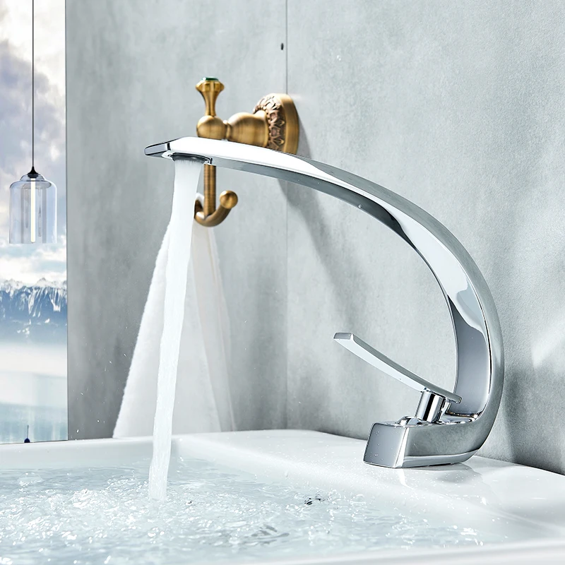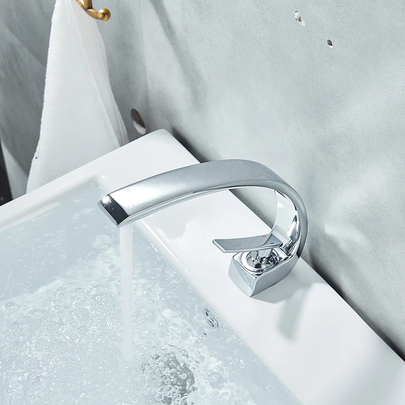 Product Name: Grifos de lavabo de naranja cromado Quyanre grifo mezclador de baño moderno grifo de latón grifo de lavabo de un solo orificio grifo de grúa elegante