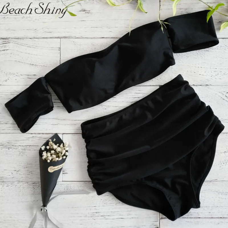 Special Offer Traje de baño sin hombros 2019 nueva llegada sin tirantes Bandeau Sexy Bikini Set mujeres traje de baño negro de cintura alta sin espalda Discount 30% Today!