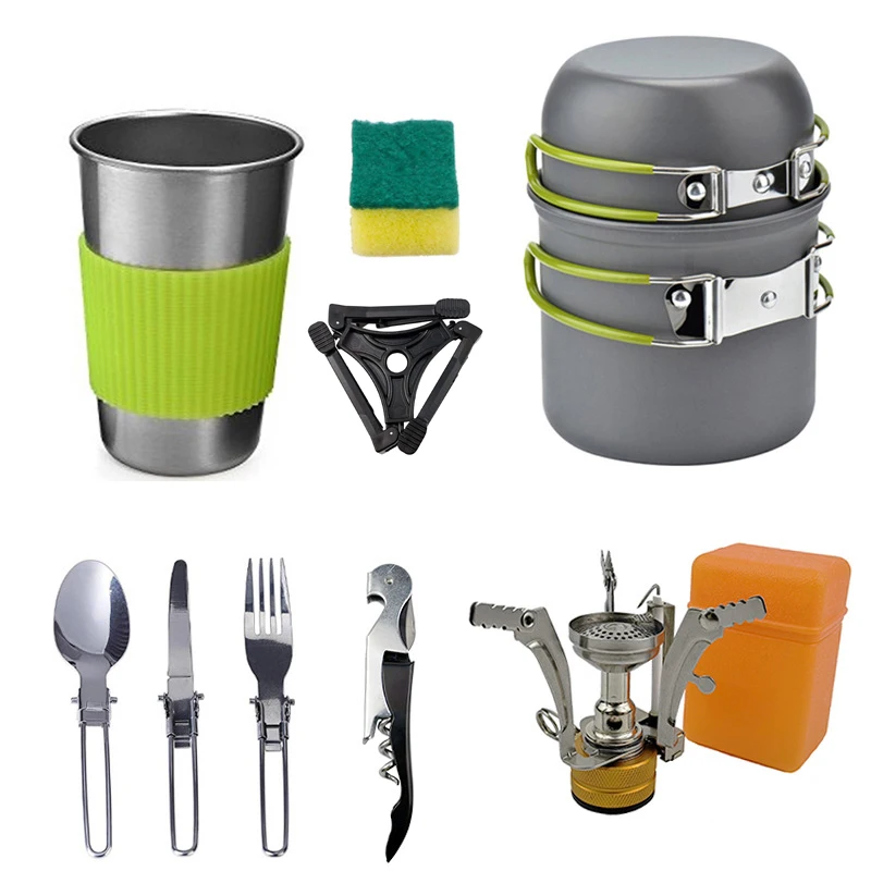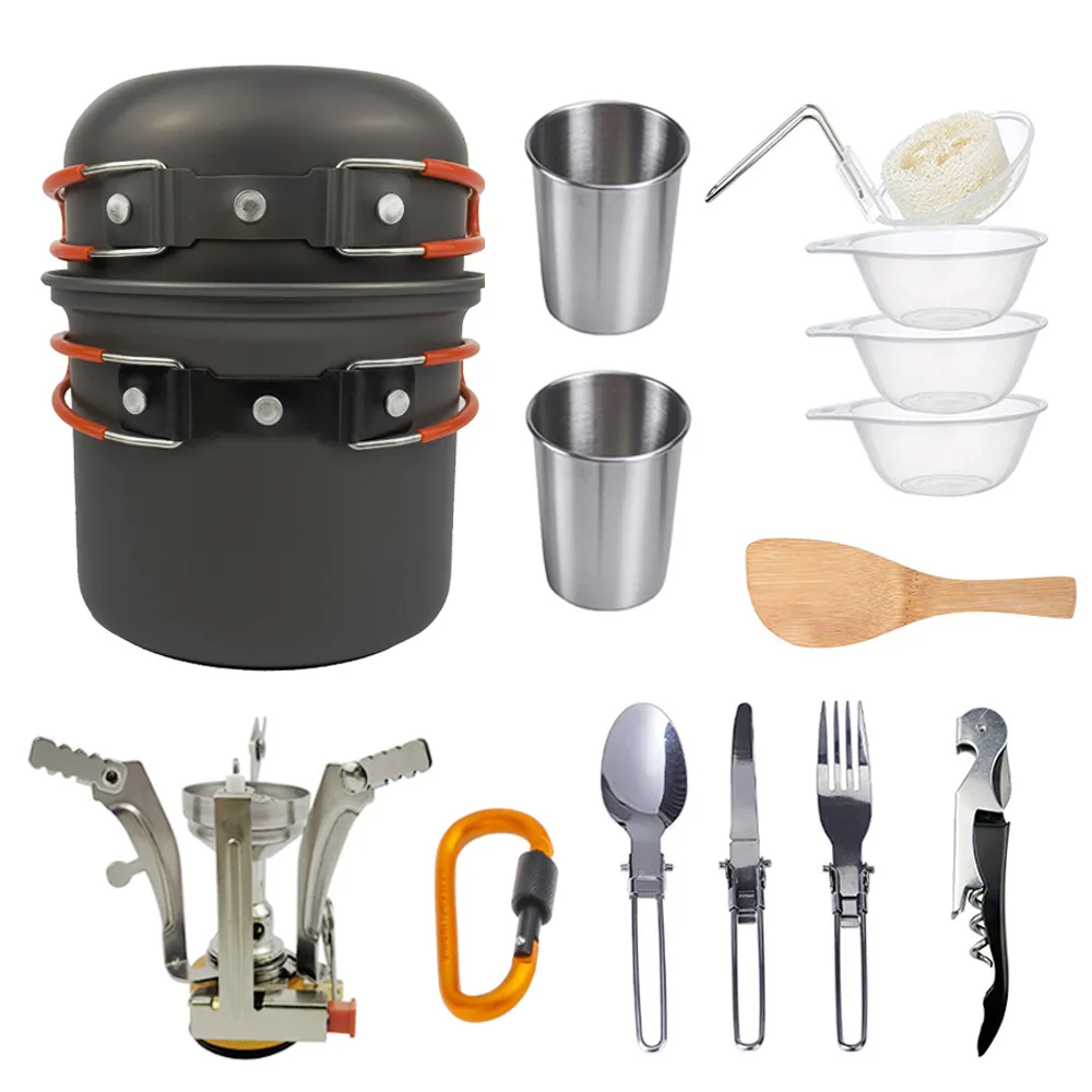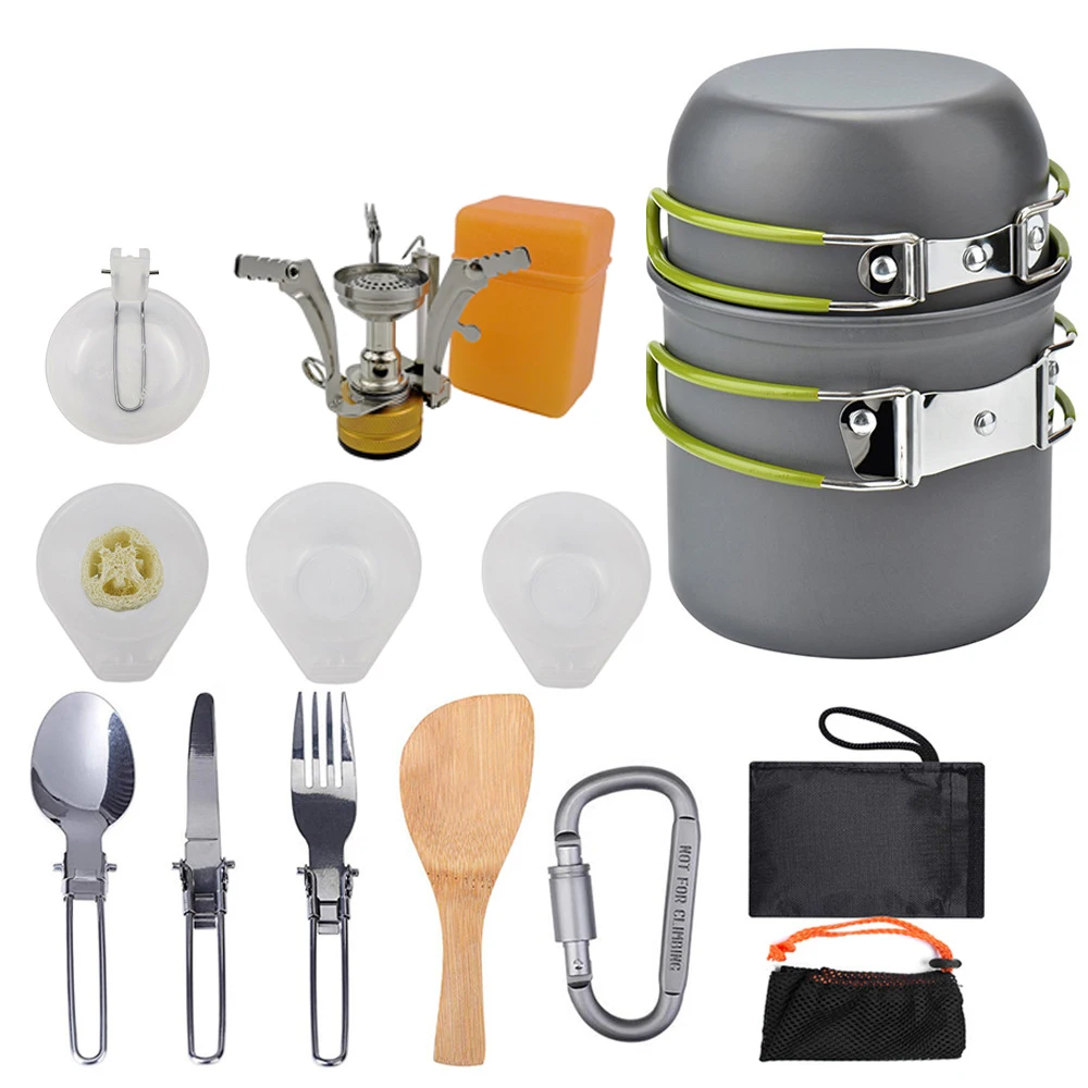 Special Offer Aleación de aluminio exterior Camping viaje utensilios de cocina Camping olla senderismo Picnic juego de vajilla turística con cuchara plegable Mini estufa de Gas Discount 35% Today!