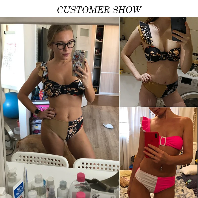 Special Offer Peachtan Sexy bikini de cintura alta 2020 traje de baño de un hombro para mujer con volantes traje de baño Retro estampado floral traje de baño para mujeres Bañadores Discount 35% Today!
