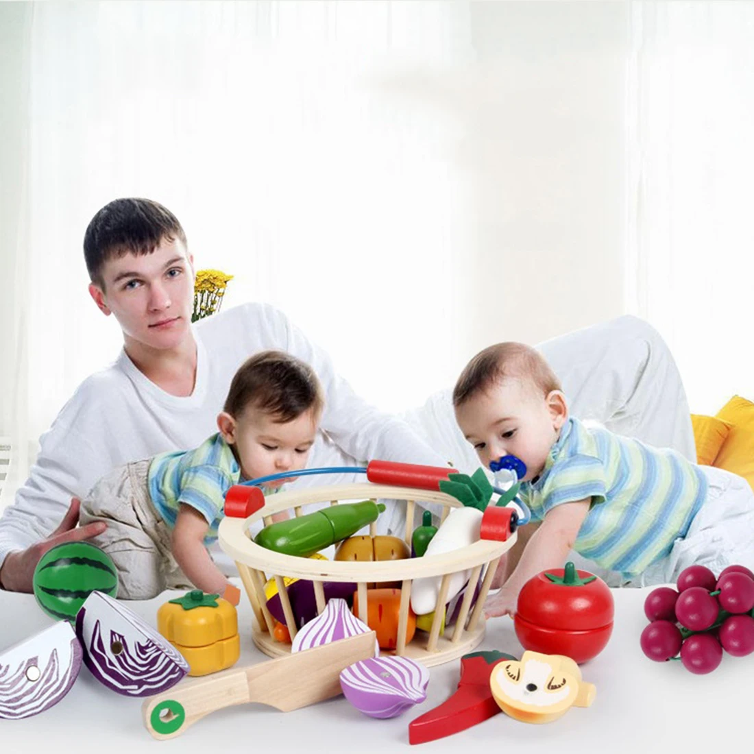 Special Offer 12 Uds. De Madera magnética de frutas y verduras juego de juguete de corte conjunto de juguetes para niños Juego y simulación de cesta redonda de frutas Discount 36% Today!