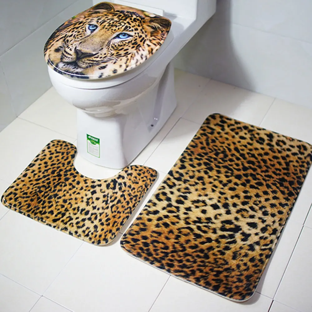 Special Offer 3 unids set alfombra de baño con estampado de leopardo y Delfín alfombra de baño decoración duradera fundas secas antideslizantes suministros para el hogar Discount 39% Today!