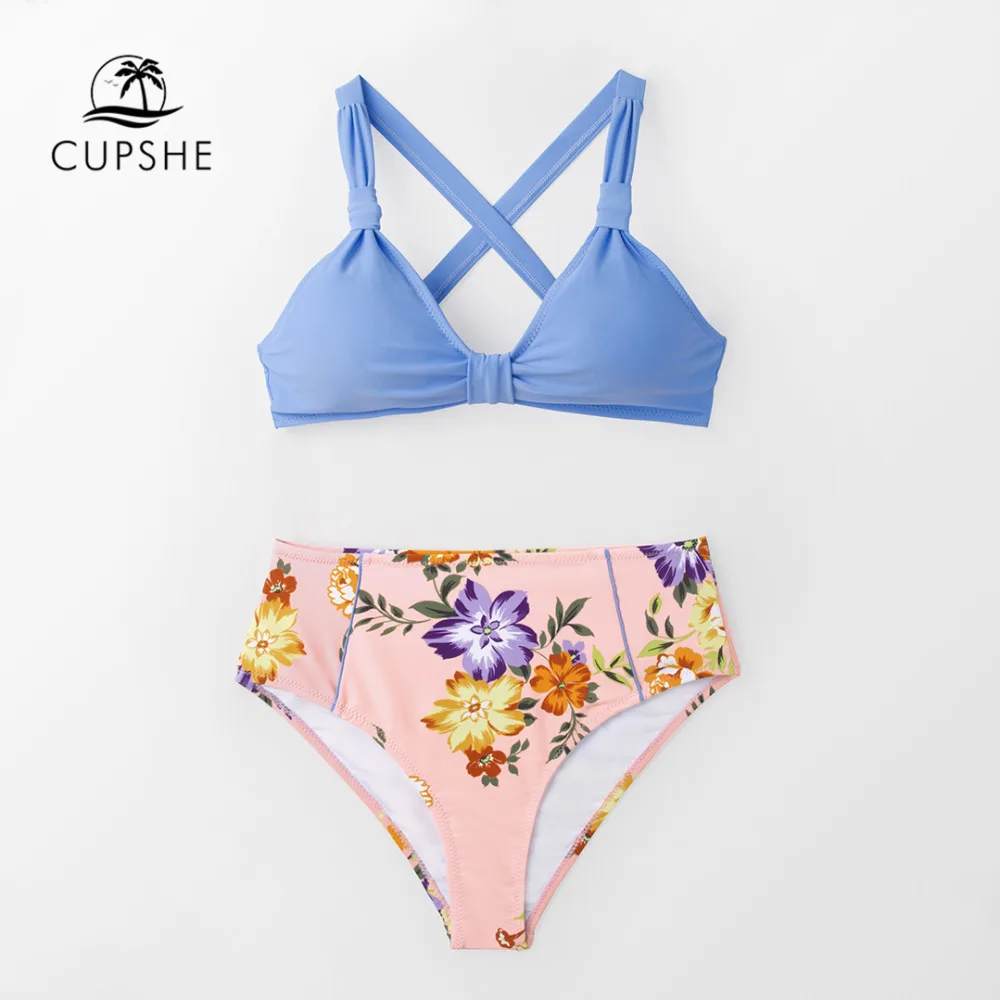 Special Offer CUPSHE dulce sólido y Floral anudado Bikini conjuntos mujeres entrecruzadas dos piezas trajes de baño 2020 chica playa trajes de baño Discount 47% Today!