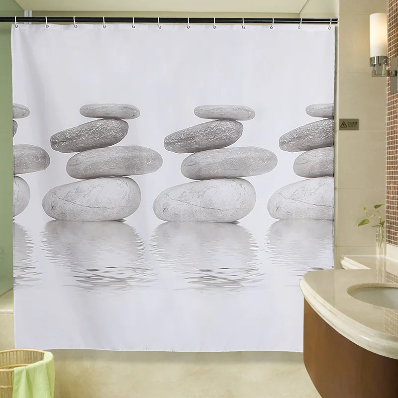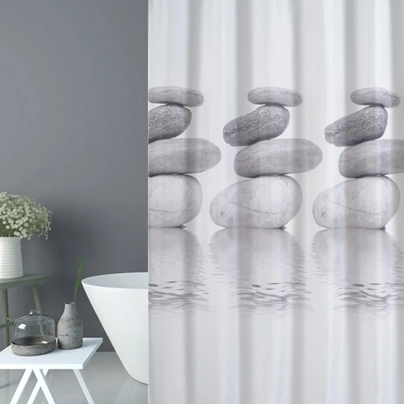 Special Offer Cortina de ducha de tela de poliéster con estampado de guijarros espesar el proceso de revestimiento productos de baño resistentes al moho cortinas de baño impermeables Discount 55% Today!