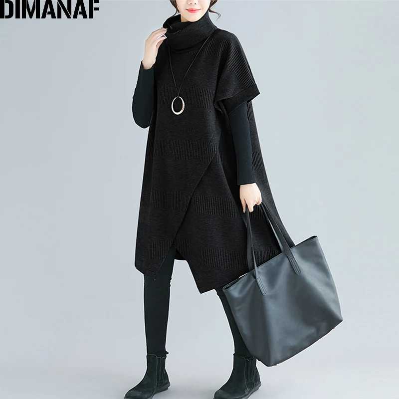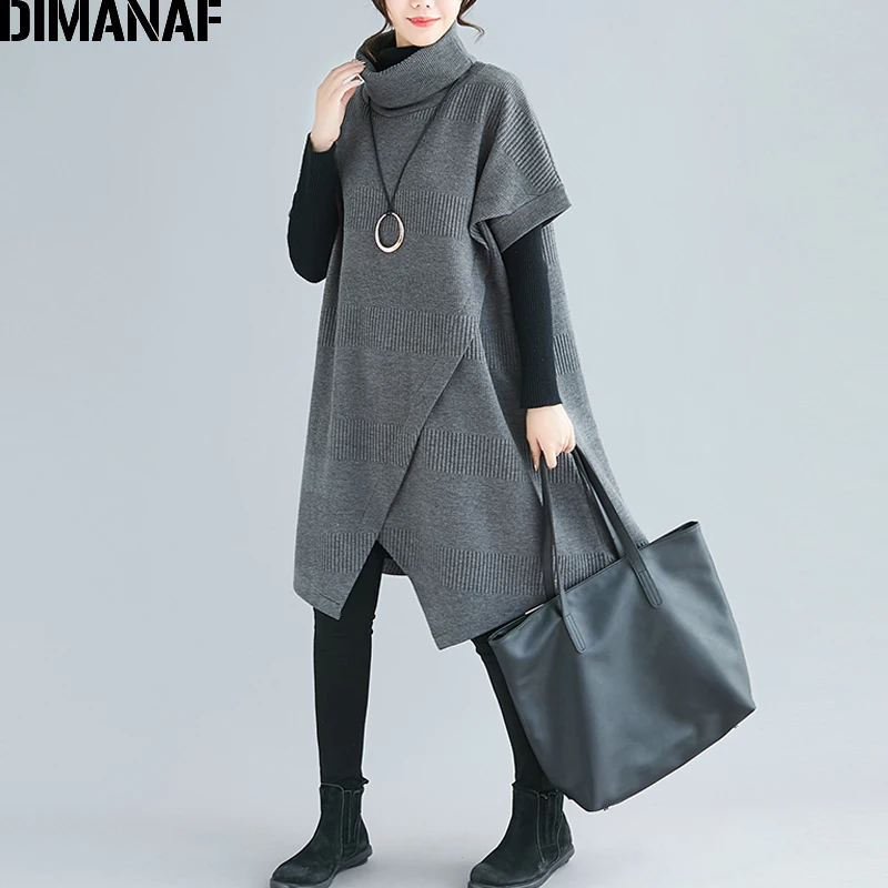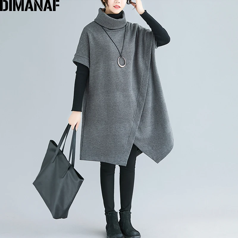 Special Offer DIMANAF Oversize invierno otoño mujer jerseys sudaderas algodón grueso de talla grande cuello alto para mujer blusas Mujer suelta Bat manga Discount 34% Today!