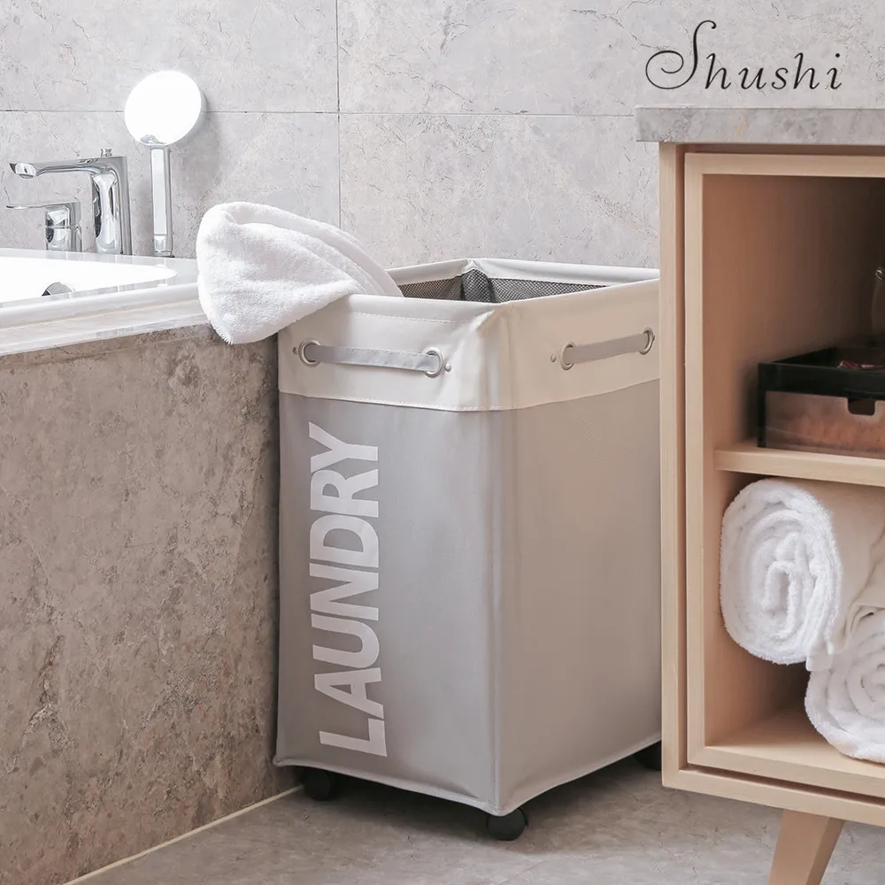 Special Offer Cesta de la ropa sucia SHUSHI, cesta de la colada, cesta de almacenamiento plegable con rueda para la oficina, cesto impermeable para la ropa de baño Oxford Discount 40% Today!
