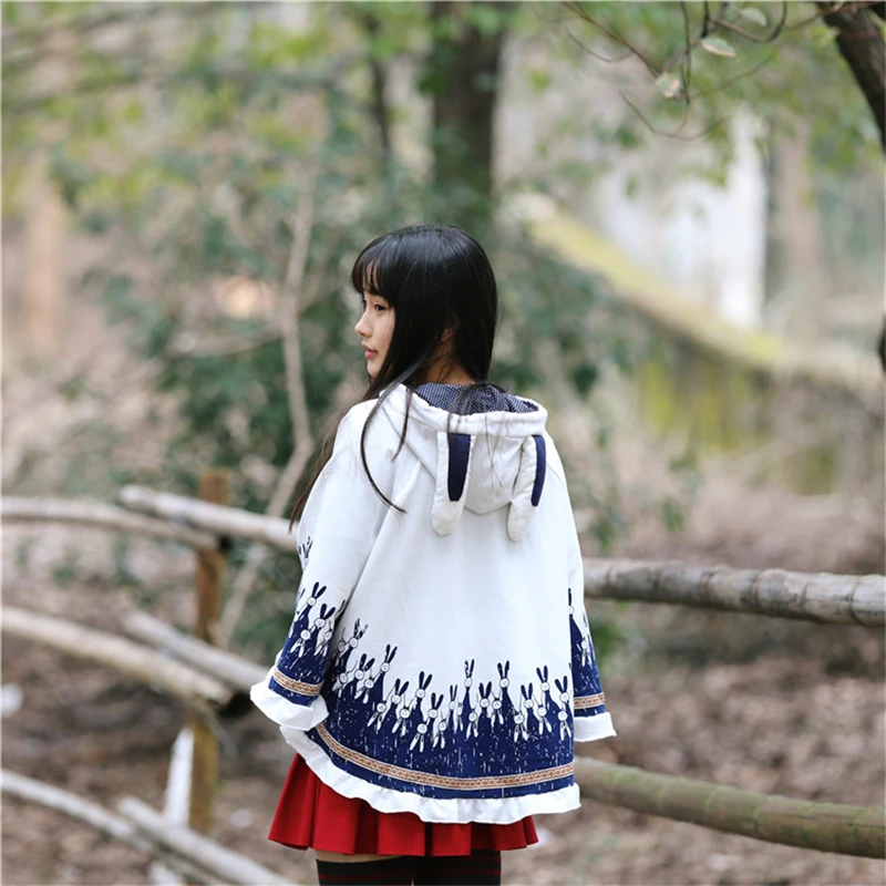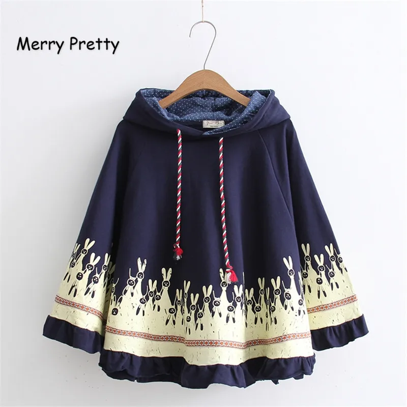 Product Name: Merry Pretty Cloak prendas de vestir exteriores mujer otoño conejo estampado oído estéreo hoodies abrigo de algodón poncho pullover chaqueta capa con capucha