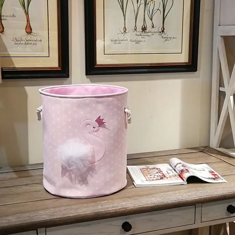 Product Name: D35XH40cm cesta de la ropa sucia 2019 nueva cesta Rosa organizador en forma de cisne cesta de almacenamiento con cordón para libros de Juguetes