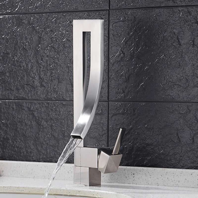 Special Offer Grifos de lavabo de latón cromado cuadrado alto grifo de lavabo de baño de un solo mango montado en cubierta de inodoro mezclador grifo de agua caliente y frío 9060 Discount 40% Today!