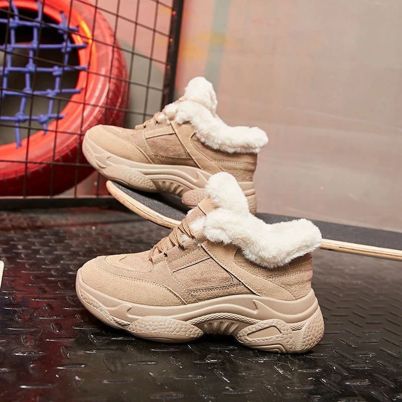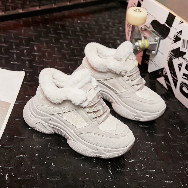 Product Name: Zapatillas de plataforma de invierno para mujer Zapatillas gruesas de deporte de moda femenina mantener caliente de felpa negro Tenis zapatos casuales de cuero mujer 2019